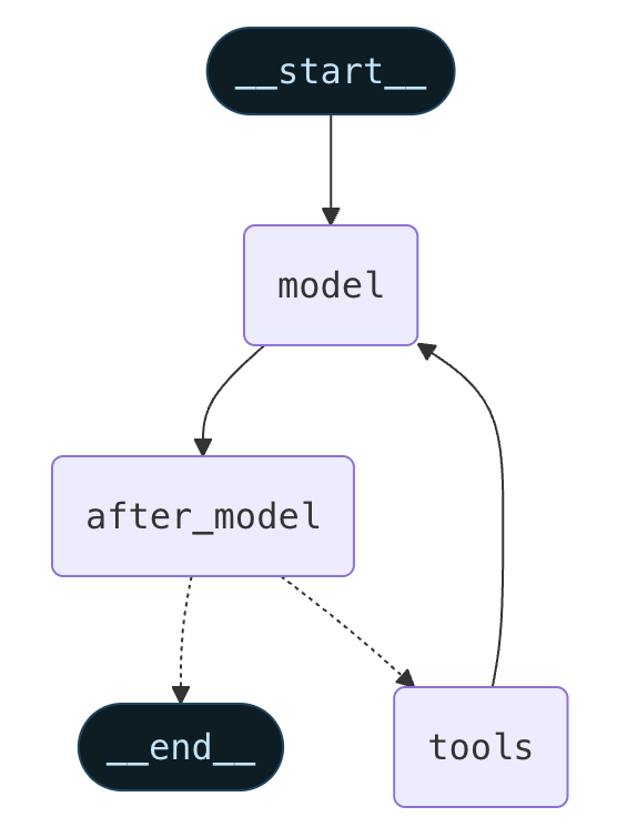모델 호출 후에 메시지를 처리하기 위해 @after_model 미들웨어에서 short-term memory(상태)에 액세스합니다.