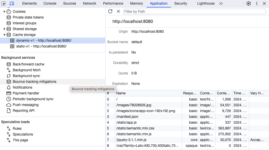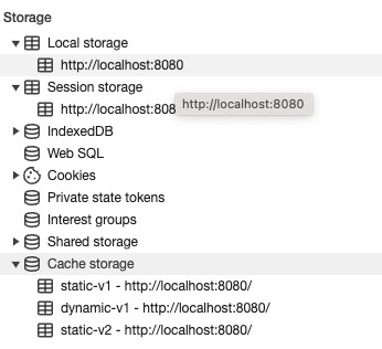 위에서 CACHE_STATIC_NAME와 CACHE_DYNAMIC_NAME로 상수를 지정하고 변경 시 위의 버전정보를 증가시켜준다. 그러면 새로운 이름의 캐시가 생성이 된다.
