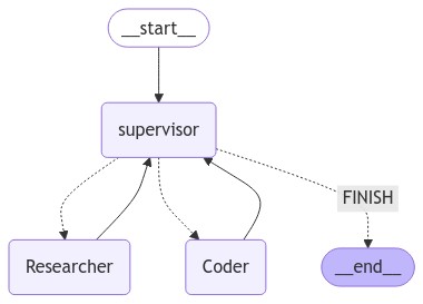 - [supervisor] 다음 노드로 coder로 지정한다.
